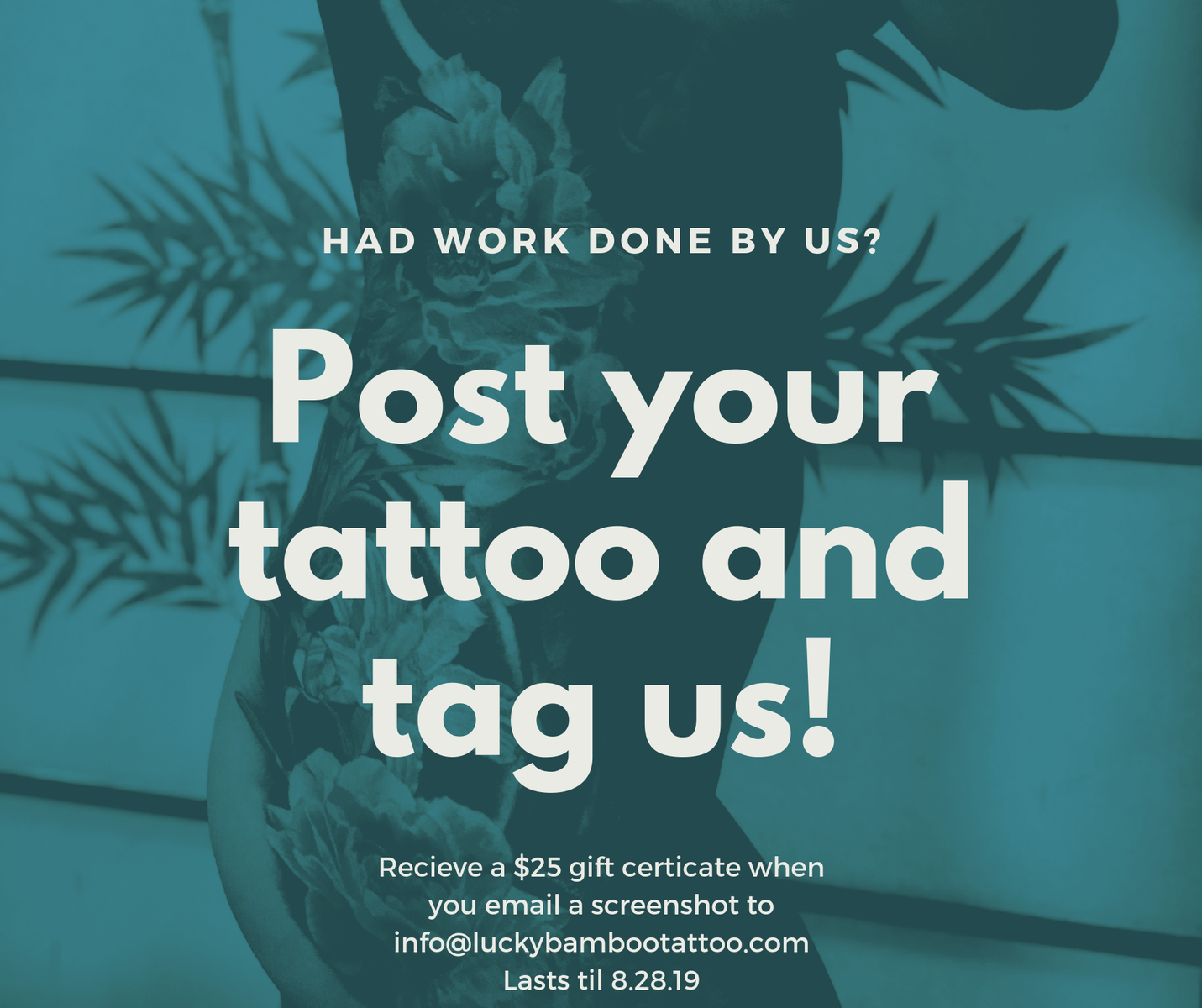 Lucky Bamboo Tattoo: Bounce Back with us and get $25.00 towards your next design!